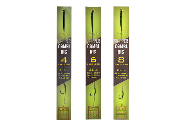 Tied to exacting standards in the ESP factory, these rigs comprise the super strong and sharp Cryogen Grippers to Tungsten Loaded semi stiff coated braid. Available in green and brown and in barbed and barbless sizes 4, 6 and 8.