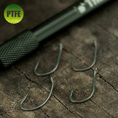 The hook pattern wants to bury itself quickly thanks to the angle of pull naturally created by combining the in-turned eye and super-sharp swept hook point. This is enhanced by the slick PTFE coating and the points long tapered profile. As soon as the fish is pricked the hook is embedding itself more and more securely, ensuring more pick-ups are translated into fish in the net.